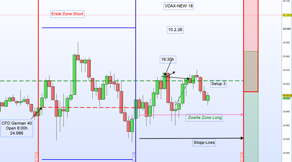 Ein äußerst dyna­mi­scher Han­dels­tag mit star­ken Rich­tungs­wech­seln, der jedoch durch kon­se­quen­te Set­up-Umset­zung und struk­tu­rier­tes Posi­ti­ons­ma­nage­ment ins­ge­samt deut­lich posi­tiv abge­schlos­sen wer­den konnte.