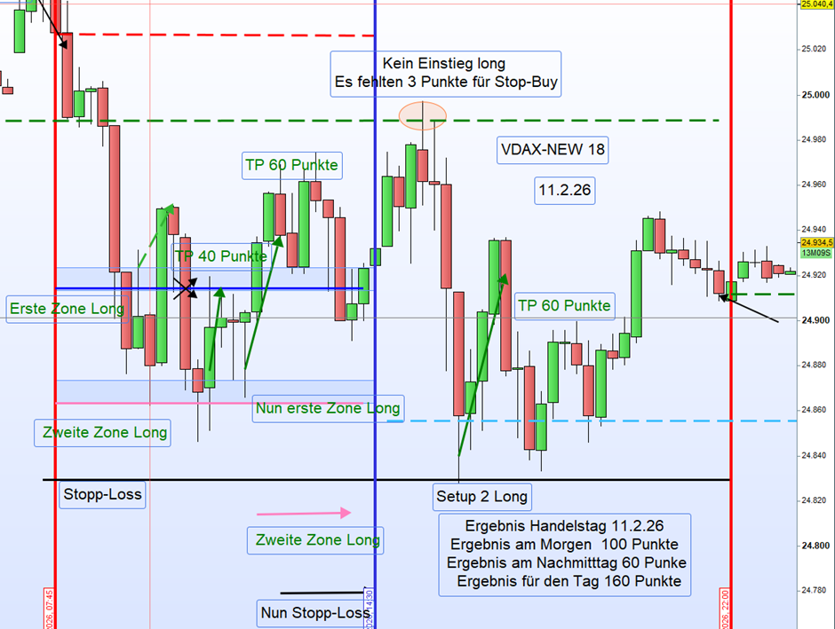 Eine zwei­te Short-Posi­ti­on ent­wi­ckel­te sich jedoch nicht wie erwar­tet und lief in den Ver­lust, sodass für den Mor­gen­han­del ins­ge­samt ein Ver­lust von 60 Punk­ten ver­bucht wer­den musste.