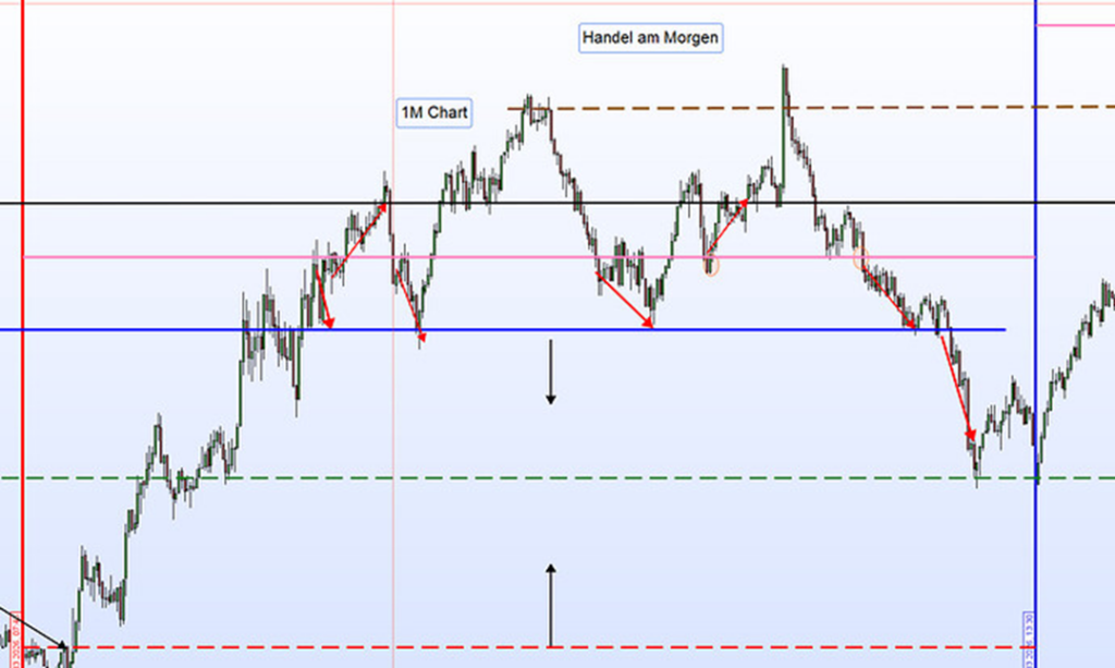 Die Trading Range betrug rund 450 Punkte. Innerhalb dieser Bewegung kam es immer wieder zu deutlichen Korrekturen, wodurch eine ungewöhnlich hohe Anzahl an Handelsmöglichkeiten entstand.