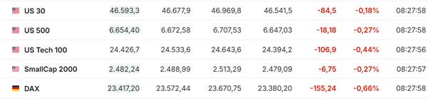 Der gesamte Kursverlauf bewegte sich unterhalb des Eröffnungskurses. Hintergrund waren die weiterhin angespannte geopolitische Situation, leicht steigende Ölpreise sowie erneut diskutierte Inflationsrisiken in den USA.