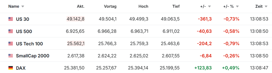 - Marktumfeld: US-CFDs und DAX-Futures leicht im Minus