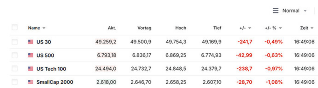 Die CFDs des German 40 notieren ca. 0,4 % im Minus, während die US-Major-CFDs leicht im Plus handeln.