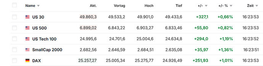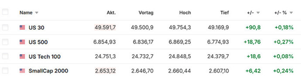 Die US-CFDs notieren ebenfalls leicht im Plus.