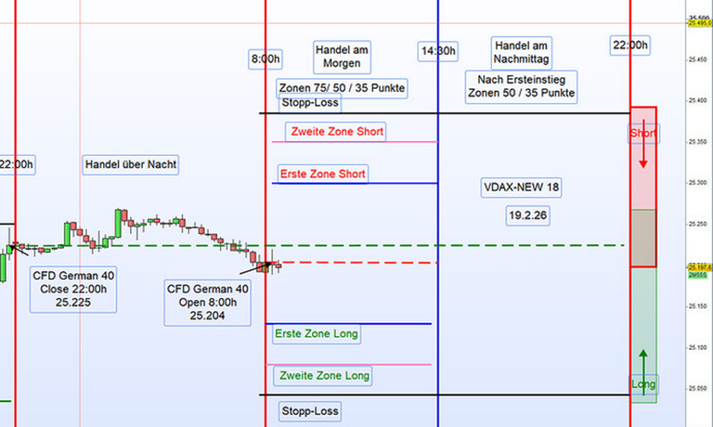 Sind die CFDs um 08:00 Uhr hingegen nur geringfügig im Plus oder Minus und zeigen sich uneinheitlich, wird der normale Zonenhandel angewandt.