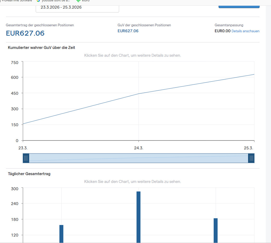 Mein Gewinn seit Montag, dem 23. März, beträgt bei kleinen Positionsgrößen: 627 €