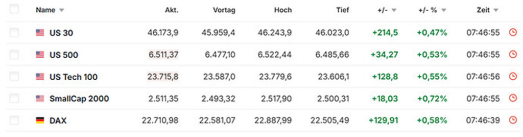 - Alle CFDs notierten um 8:00 Uhr positiv