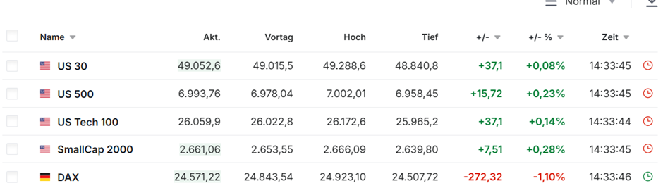 Bereits vor der US-Börseneröffnung geben die USA-Futures (S&P 500, Dow Jones, Nasdaq) die Richtung vor.