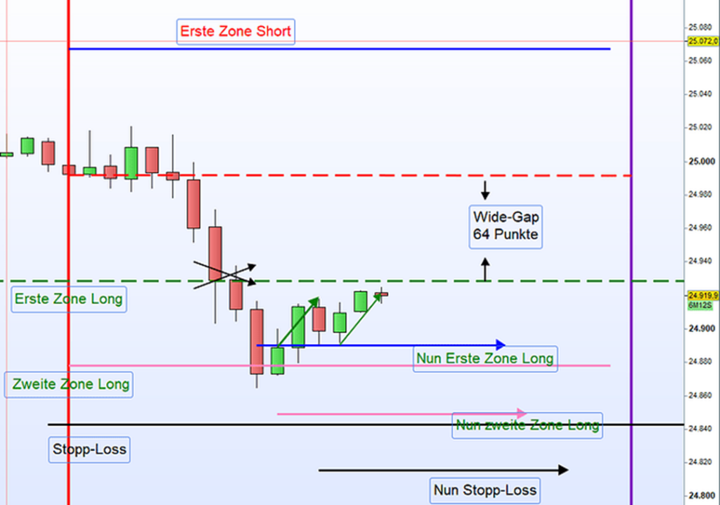 Aufgrund dieser Konstellation erfolgt der Handel am Morgen als Kombination aus Wide-Gap-Ansatz und Zonenhandel.
