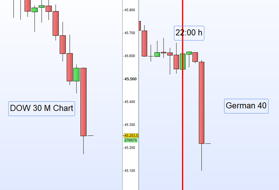 Die heu­ti­ge DAX Kor­rek­tur wur­de ein­ge­lei­tet durch den DOW. Kata­ly­sa­tor :  US-Zoll für China