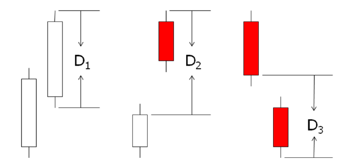 - \( TR_i = MAX ( H_i - L_i \ ;\ H_i -C_{i-1}\ ;\ L_i - C_{i-1} ) \)