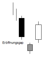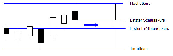 Der erste Tag ist eine weiße Kerze. Es folgt eine schwarze Kerze, wobei Eröffnungskurs der schwarzen Kerze = Eröffnungskurs der weißen Kerze.