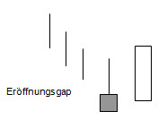 Der erste Tag ist eine schwarze Kerze. Es folgt eine weiße Kerze, wobei Eröffnungskurs der weißen Kerze = Eröffnungskurs der schwarzen Kerze.