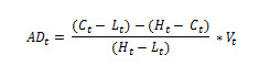 Die Berechnung des CMF erfolgt in zwei Schritten und ähnelt der Berechnung der Accumulation Distribution Linie (ADL). Im ersten Schritt wird der Closing Location Value (CLV) berechnet. Im zweiten Schritt wird der AD-Wert berechnet. Dafür wird das CLV mit dem Volumen multipliziert.