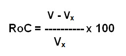 Die Rate of Change – die Veränderungsrate – liefert die gleiche Aussage wie das Momentum. Sie wird etwas anders berechnet und kann deshalb beim Generieren von Handelssystemen sinnvoller sein als das Momentum.